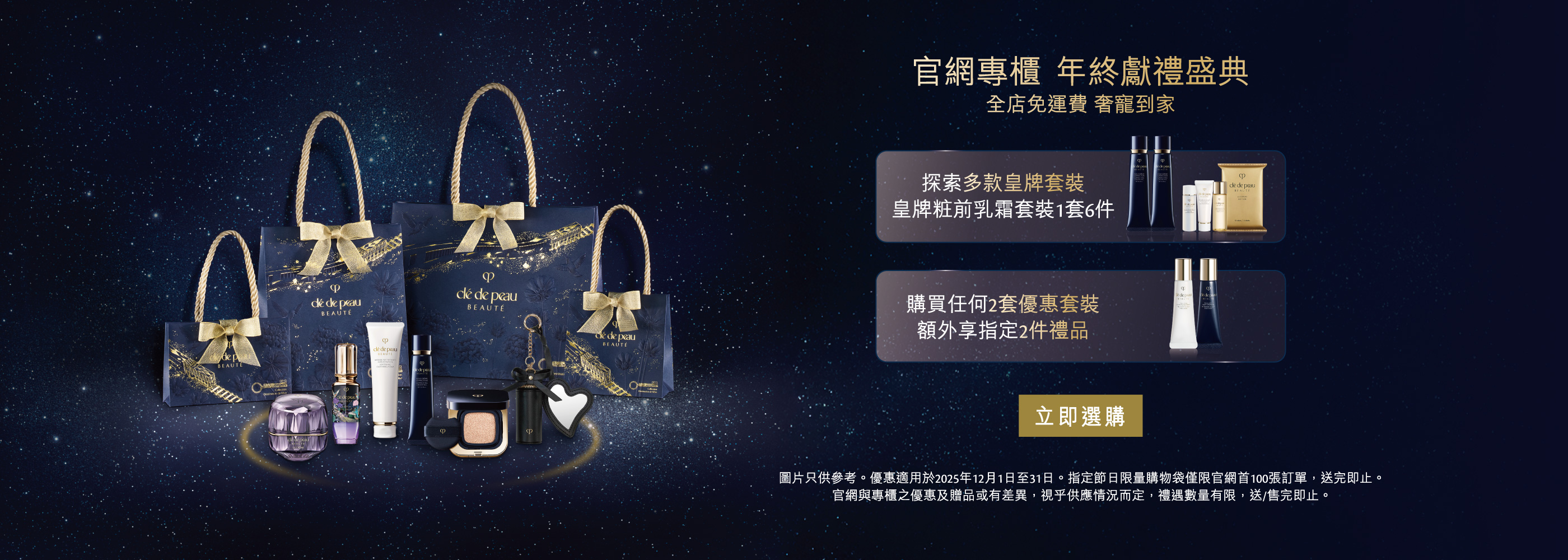 購買任何產品(優惠套裝除外)滿HK$2,500 可獲贈佳節無瑕美肌禮遇